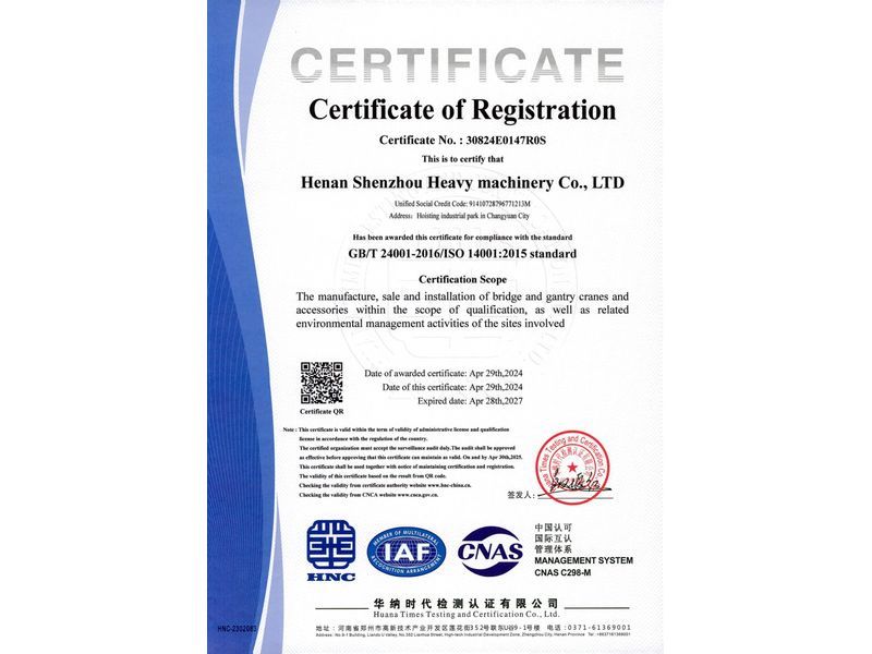 環(huán)境管理體系認(rèn)證證書