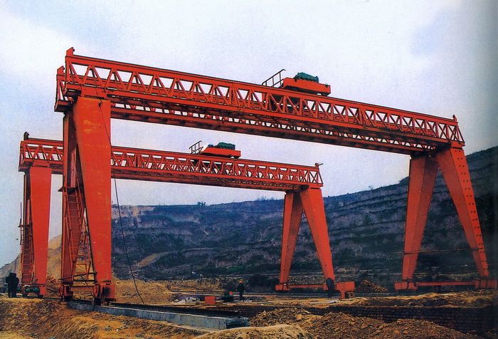 路橋門(mén)式起重機(jī)其主要用于橋梁建設(shè),工作速度慢,由門(mén)架、卷?yè)P(yáng)機(jī)小車(chē)、大車(chē)運(yùn)行機(jī)構(gòu)、司機(jī)室和電氣控制系統(tǒng)組成。門(mén)架為桁架結(jié)構(gòu),具有結(jié)構(gòu)輕、抗風(fēng)力強(qiáng)等 優(yōu)點(diǎn)。包括主梁、上端梁、支腿、下端梁、走行臺(tái)車(chē)及走臺(tái)欄桿等。主梁采用三角桁架結(jié)構(gòu),上面鋪設(shè)有軌道,供小車(chē)沿主梁方向作橫向移動(dòng)。支腿采用箱形或鋼管 兩種形式。小車(chē)上布置有卷?yè)P(yáng)機(jī),體積緊湊,自重輕。大車(chē)運(yùn)行采用擺線針輪減速器,軟啟動(dòng)電機(jī),八輪四驅(qū)動(dòng),運(yùn)行平穩(wěn)。操作方式采用閉式司機(jī)室,內(nèi)有可調(diào)式 座椅,底板鋪設(shè)絕緣墊,窗玻璃采用鋼化玻璃,配有滅火器、電風(fēng)扇,可根據(jù)用戶(hù)要求配置冷暖空調(diào)、訊響器、對(duì)講機(jī)等物品。